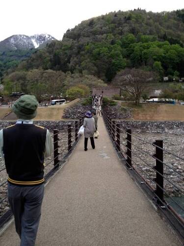 庄川に架かる吊り橋。川面に流れる白布のような流れが、綿流しのシーンを思い起こさせる。白川郷に入るときに必ず渡る場所で、巡礼の締めにふさわしい。